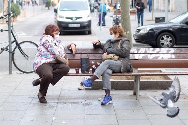 Two women talk over coffee on a bench in the Poblenou neighborhood of Barcelona. EFE/Marta Pérez/File
